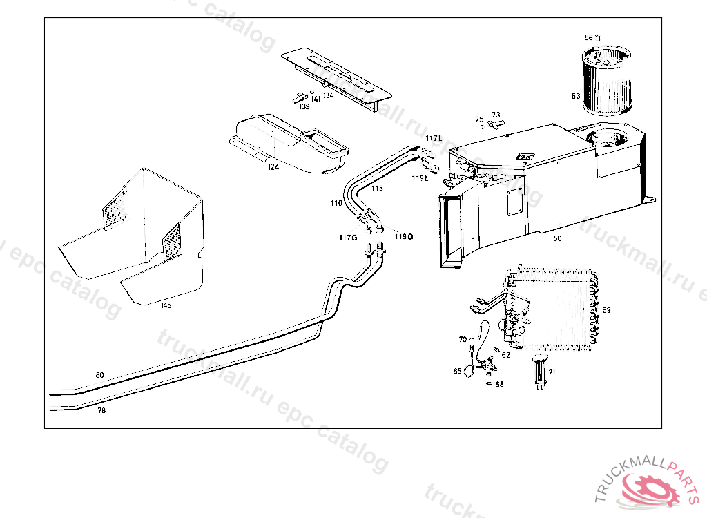 AIR DUCT (EVAPORATOR HOUSING), 100.012 FROM CHASSIS 001029 ALSO INSTALLED ON 000996,001021,001024,001026. STATE COLOR NUMBER WHEN ORDERING