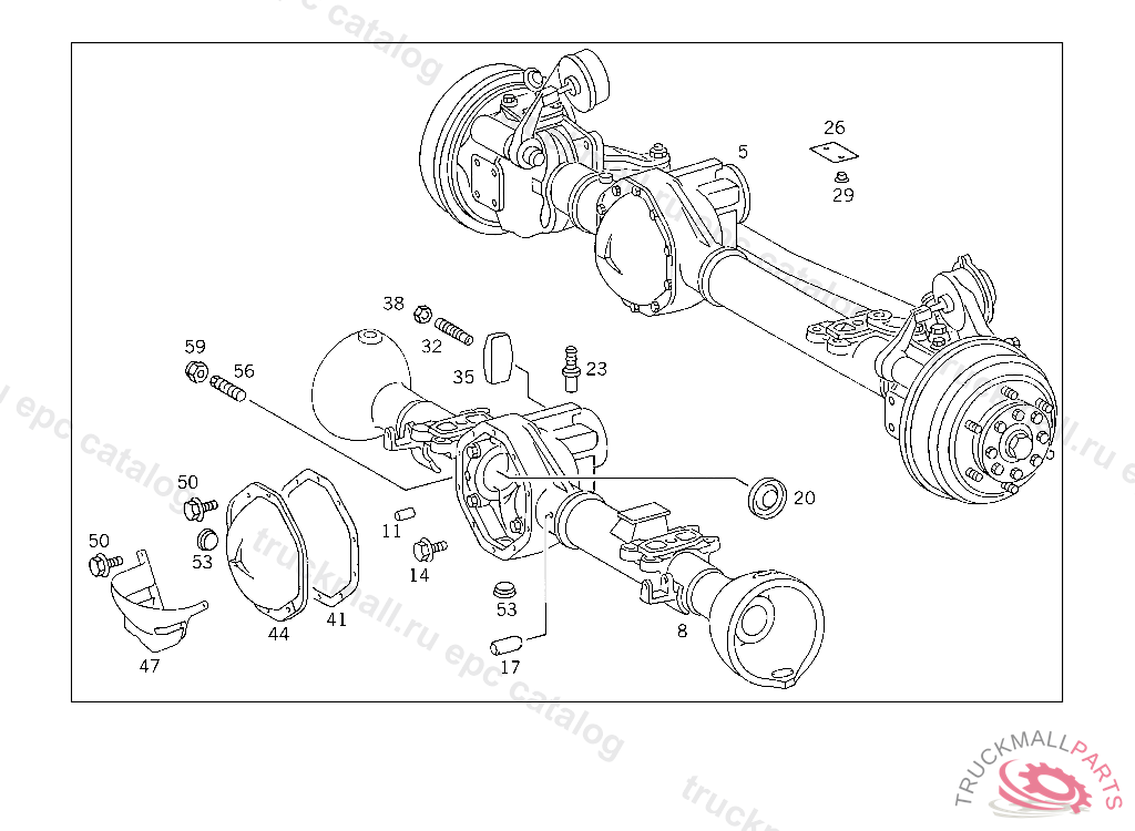 FRONT AXLE HOUSING , DELIVER ADDITIONALLY UP TO FRONT AXLE, 1X 615 330 02 19, 1X 615 330 03 19 731.304 2 599965 731.305 2 599924