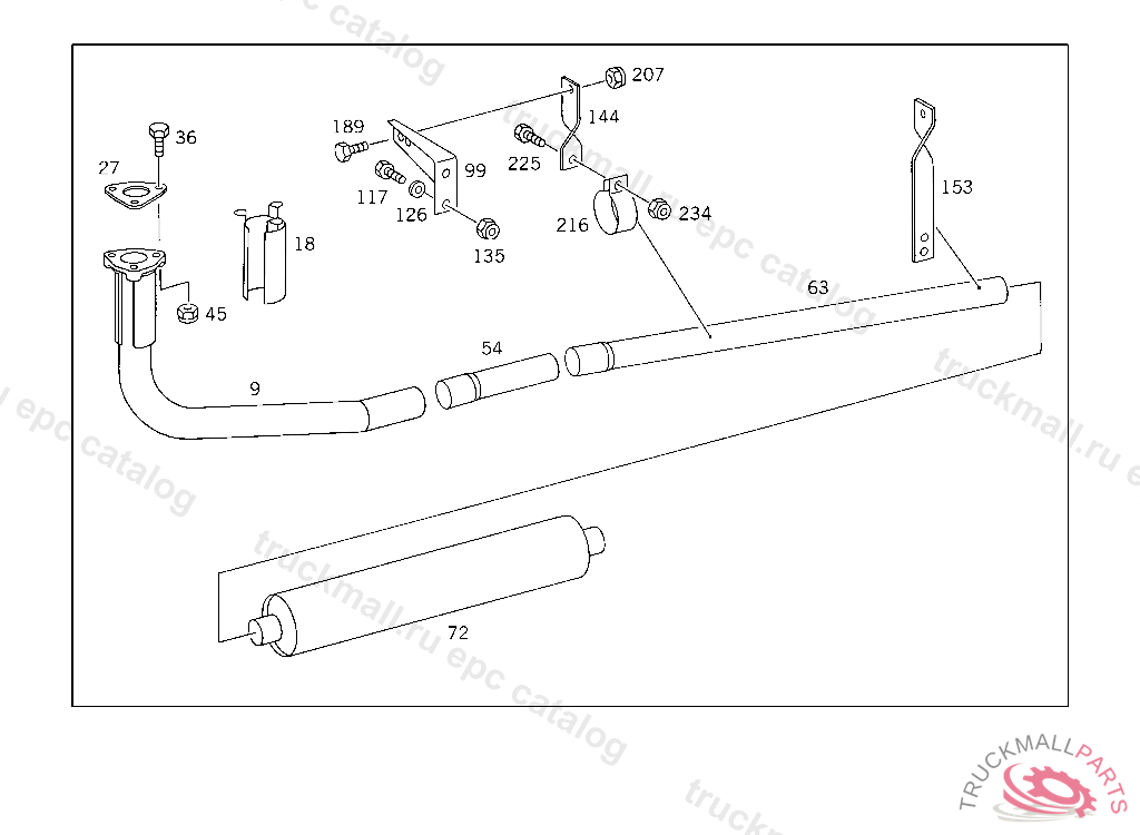 FRONT EXHAUST PIPE AT MUFFLER, 345.050 UP TO IDENT NO. 715460