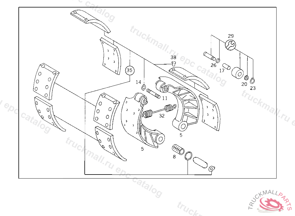 BRAKE SHOE WELDED VERSION, WITH WEAR INDICATOR, ONLY REPLACEABLE BY PAIRS