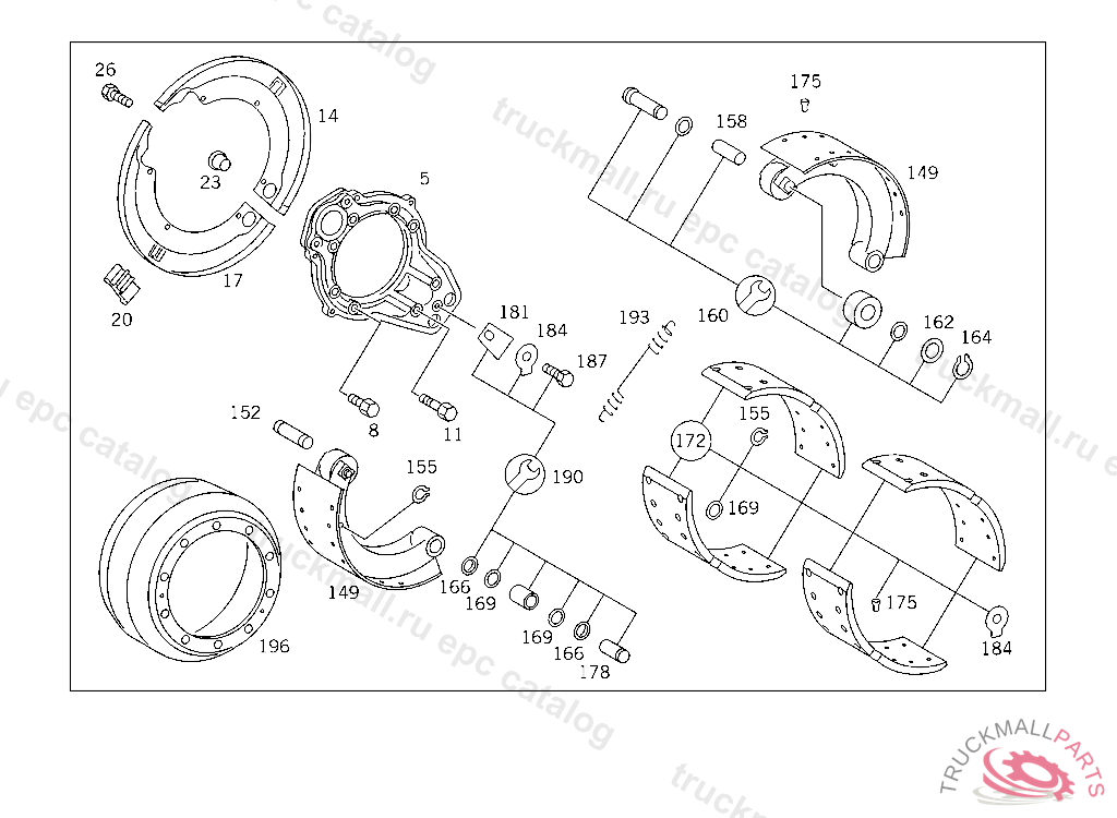 BRAKE SHOE , FIRST EXHAUST STOCK OF OLD PARTS UP TO FRONT AXLE E 128437, Replaced By: A3934202519