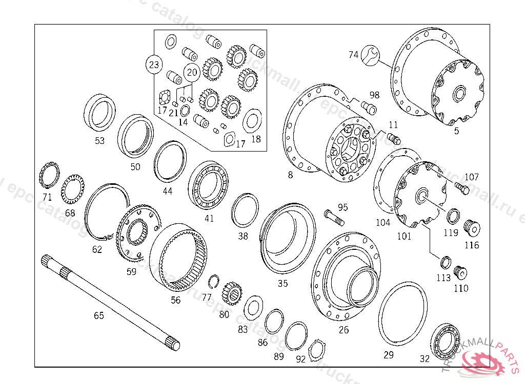 OUTSIDE GEAR , FIRST EXHAUST STOCK OF OLD PARTS UP TO FRONT AXLE 874843 MAN AXLE, Replaced By: A3553541212, +002A3553541809, +002A3469940439