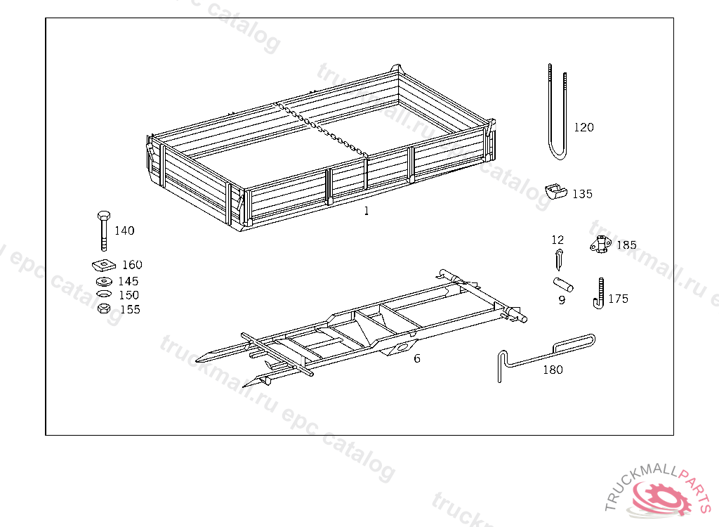 SUBSTRUCTURE (AUXILIARY FRAME), DUMPING PLATFORM AND COMPONENT PARTS,INCLUSIVE OF SPARE WHEEL MOUNTINGS,SHOULD BE ORDERED FROM THE RESPECTIVE PLATFORM MANUFAC TURERS,MESSRS.F.X.MEILLER,MUNICH