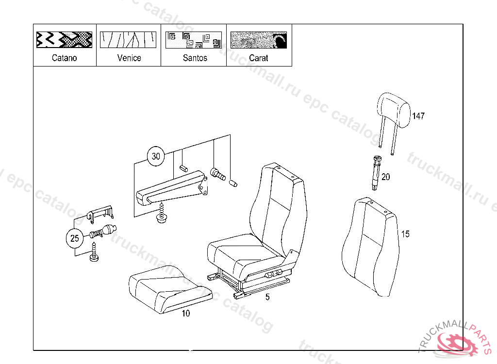 SEAT. STANDARD SEAT LEFT VELOURS "CATANO", IF REQUIRED ARMREST MUST BE ORDERED SEPARATELY ALSO TO BE ORDERED: A 002 860 01 69