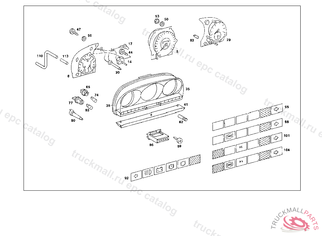 KNOB TRIP ODOMETER READING IN KILOMETERS, 023 008931 024 10/50,12/52 004142 20/60,22/62 004138 043 010969 044 015095