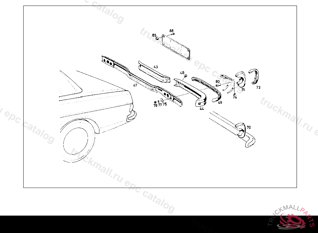 REAR BUMPER FACE BAR REAR RIGHT, UP TO CHASSIS: 110.010 130557 110.110 225647 111.010 069692