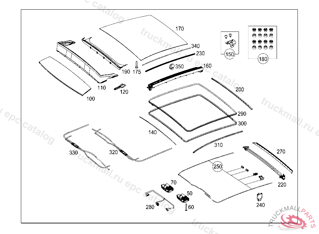 COVER FRAME ELECTRIC SLIDING/LIFTING ROOF, FIRST EXHAUST STOCK OF OLD PARTS UP TO IDENT NO. J 20130731 V 20130801, Replaced By: A1767800000