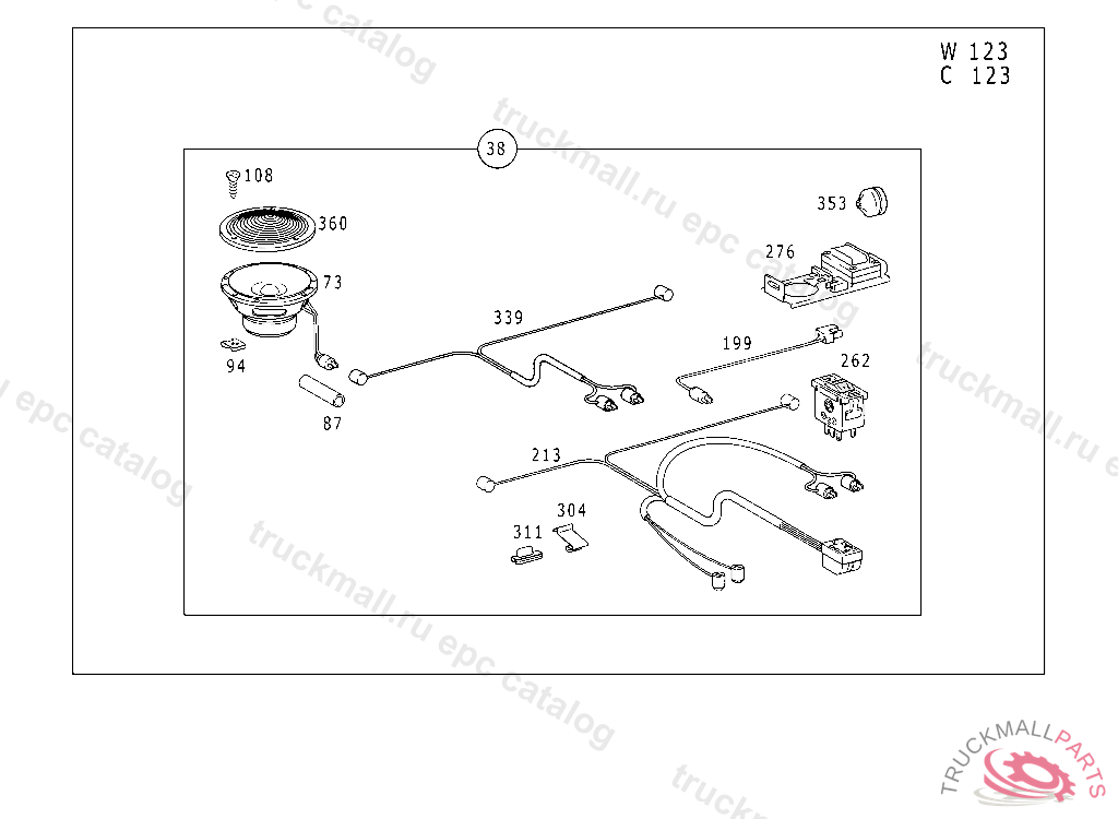 RADIO ACCESSORIES REAR LOUDSPEAKER INSTALLATION KIT, THE FOLLOWING PARTS ARE NOT INCLUDED IN RANGE OF DELIVERY: ON 123.02,123.03,123.1,123.22,201. VCOVERING IN HOUSING