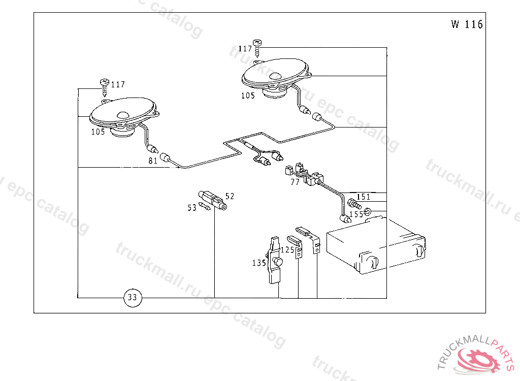 ELECTRIC CABLE LOUDSPEAKER CONNECTION CABLE, FROM CHASSIS 116.020 037452 116.024,025 039538 116.028,029 025862 116.032,033 034710