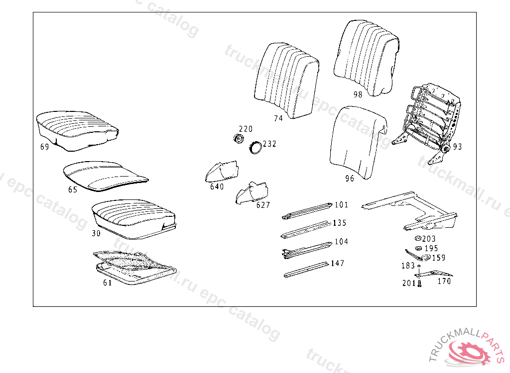 CUSHION FRAME , FROM CHASSIS 116.020 112847 116.024,025 132678 116.028,029 050610 116.032,033 088837 116.036 005559