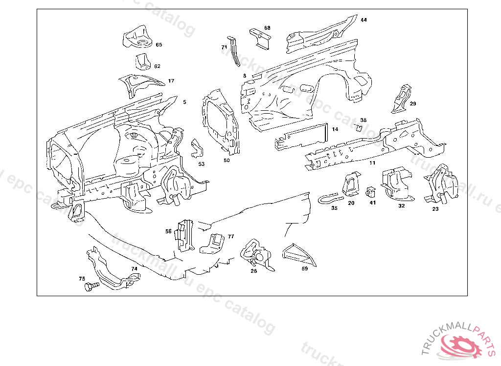 REINFORCEMENT BETWEEN LEFT FRONT SIDE MEMBER AND FIRE WALL, 023 194300 033 082986 123 219668 130 219920 223 013534