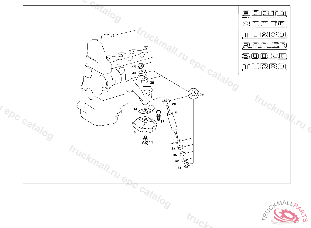 SCREW ENGINE FRONT MOUNTING TO ENGINE SUPPORT, 000 042295 003 019476 102,103 029067 105 038078