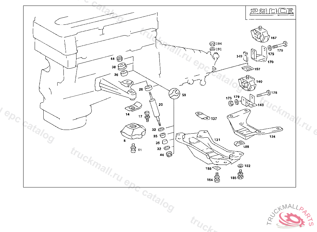 SCREW ENGINE FRONT MOUNTING TO ENGINE SUPPORT, 000 042295 003 019476 102,103 029067 105 038078