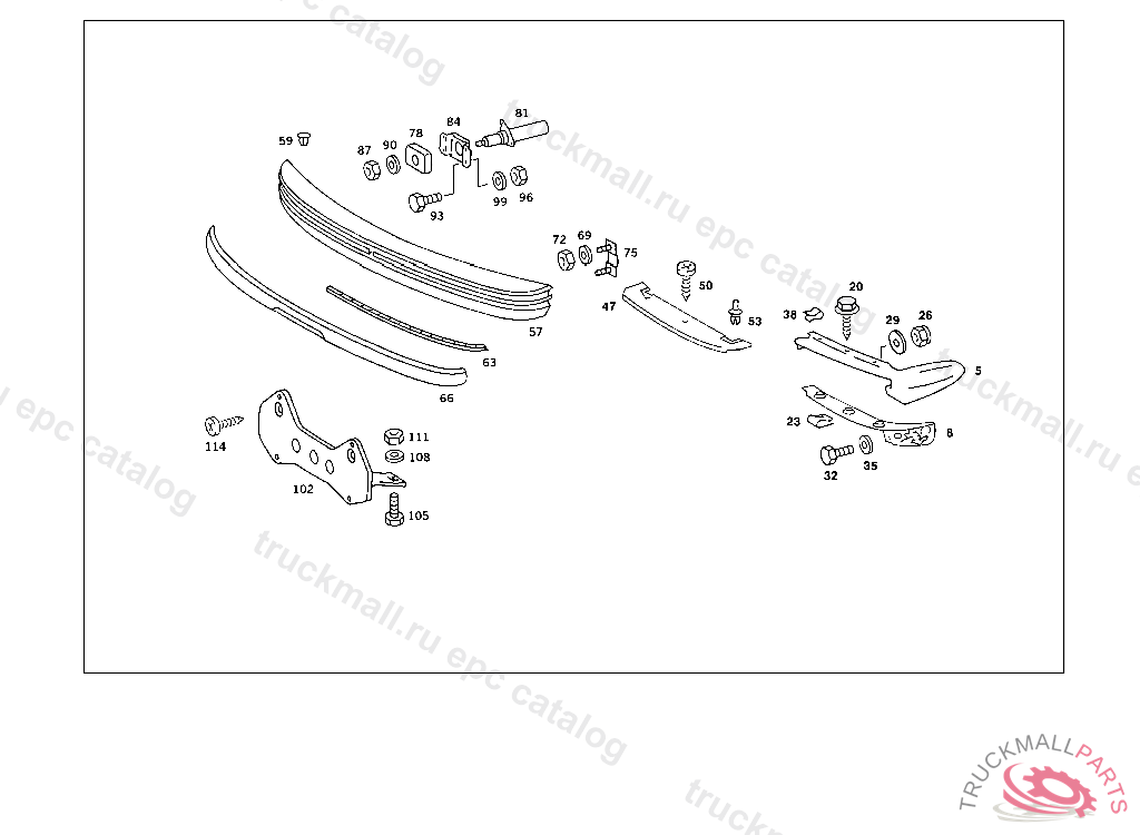 BUMPER JOINT COVER FRONT,BETWEEN BUMPER AND BODY, 003 099459 007 082986 086 006885 093 008450 102,103 219668 105 219920 183 014499 190 021302 193 000281 200 013534 280 000039 283 002732