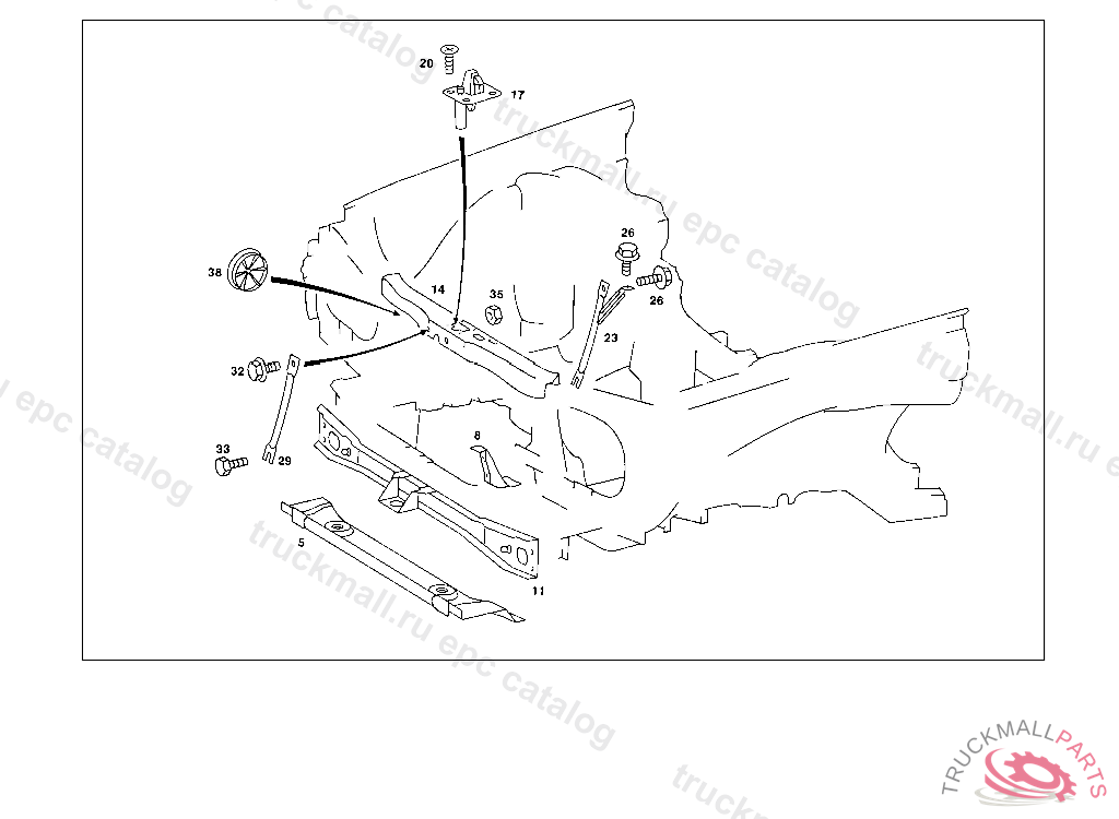 STRUT CROSS MEMBER AND STIFFENING, RIGHT FRONT, 003 099458 007 082985 086 006884 093 008449 102,103 219667 105 219919 183 014498 190 021301 193 000280 200 013533 280 000038 283 002731