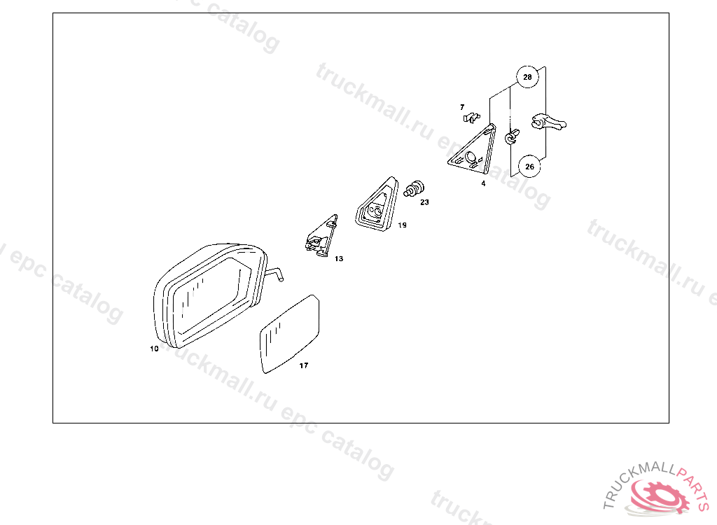 MIRROR GLASS RIGHT, UP TO END OF MODEL YEAR '82