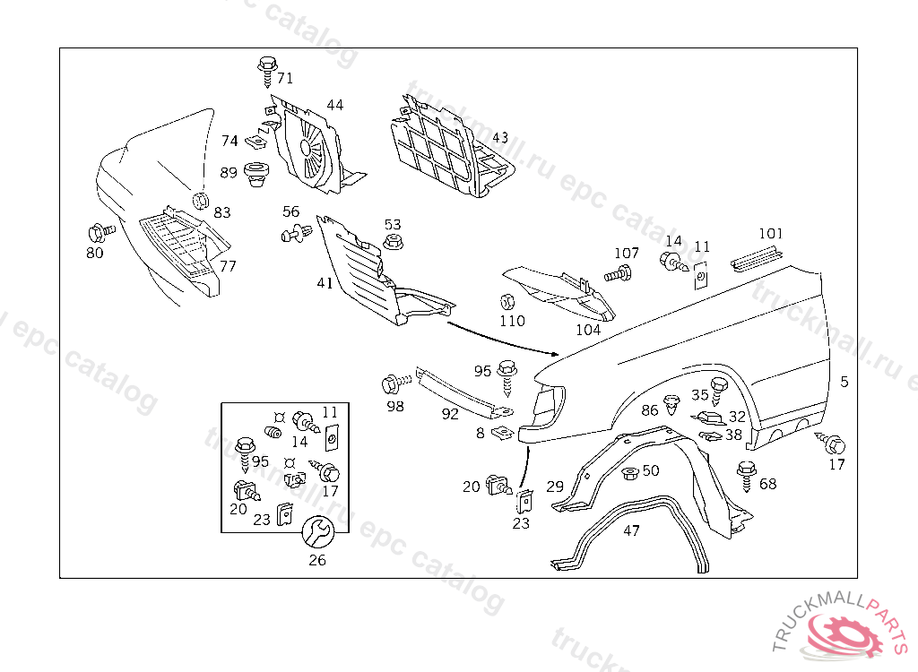 SCREW PARTITION PANEL TO FRONT FENDER, 003 109847 007 098846 086 007461 093 010729 102,103 304111 105 266568 183 019766 190 024811 193 007801 200 082947 280 003503 283 008887