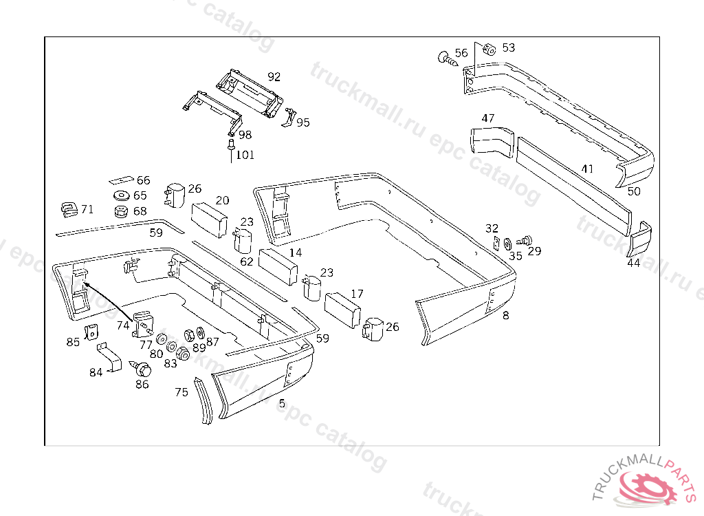 PANELLING REAR BUMPER, TO BE PAINTED PRIOR TO INSTALLATION FOR COLOR NUMBERS AND PAINT CODES USED FOR OUTSIDE PARTS,SEE FOOTNOTE 901