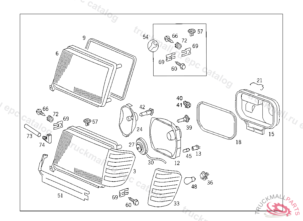 LIGHTING UNIT LEFT, R.H. TRAFFIC, USED W/WHITE BLINKER LAMP BOSCH, C 020765 ALSO INSTALLED ON B 891779 - C 020763 WITH CODE 859