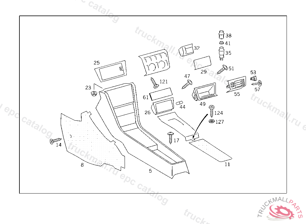 LINING IN TRAY BETWEEN FRONT SEATS VELOURS, TO BE ADAPTED DURING ASSEMBLY