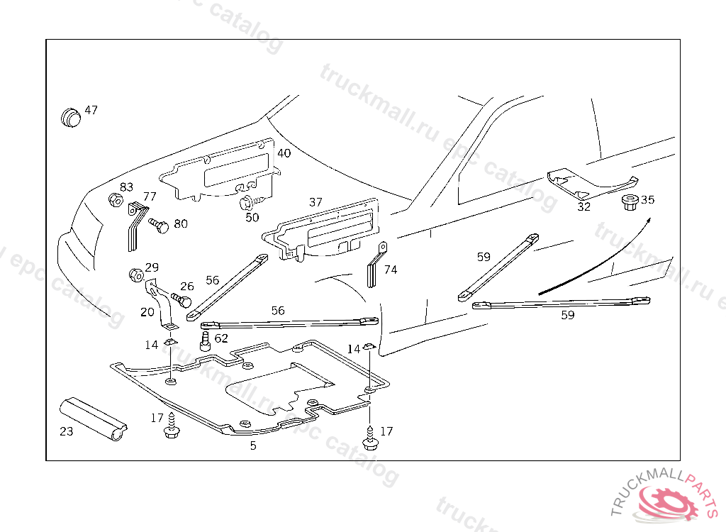 PANELLING , FIRST EXHAUST STOCK OF OLD PARTS UP TO IDENT NO. B 143650, Replaced By: A1245241530, +001A1245240047, +001A1245240147