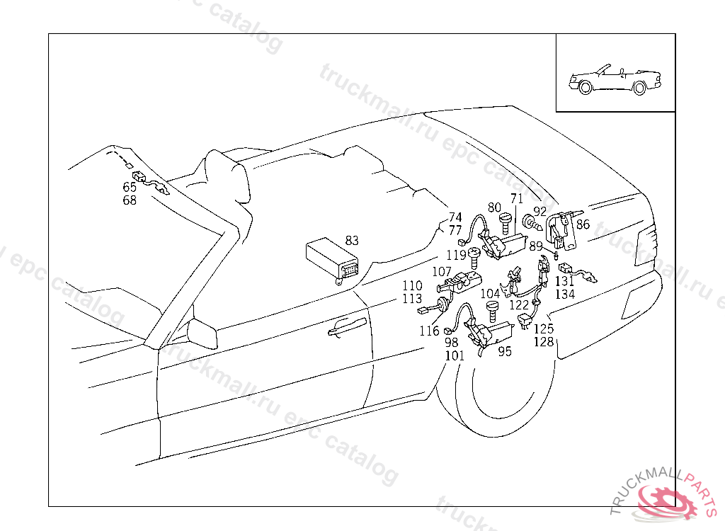 CONTROL UNIT ON FLOOR BELOW REAR SEAT,INSIDE RIGHT, HYDRAULIC FOLDING TOP CONTROL AND ROLL-OVER BARB 993872