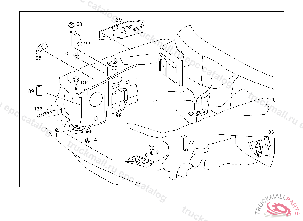 PARTITION PANEL ON SIDE MEMBER,RIGHT,BETWEEN PARTITION PANEL AND ENGINE HOOD