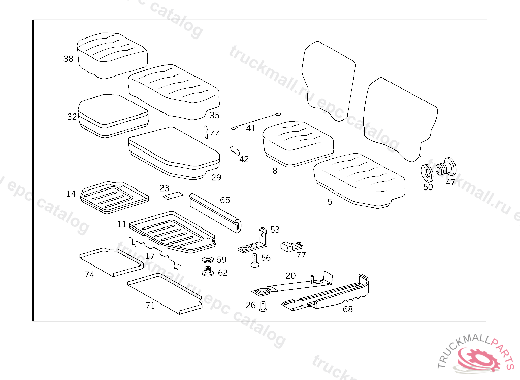 SEAT CUSHION VELOURS, RIGHT,NO.9A88I NO.5B01I NO.8E94I NO.8E95I NO.8E93I NO.6B54I NO.3B35I NO.7C29I I