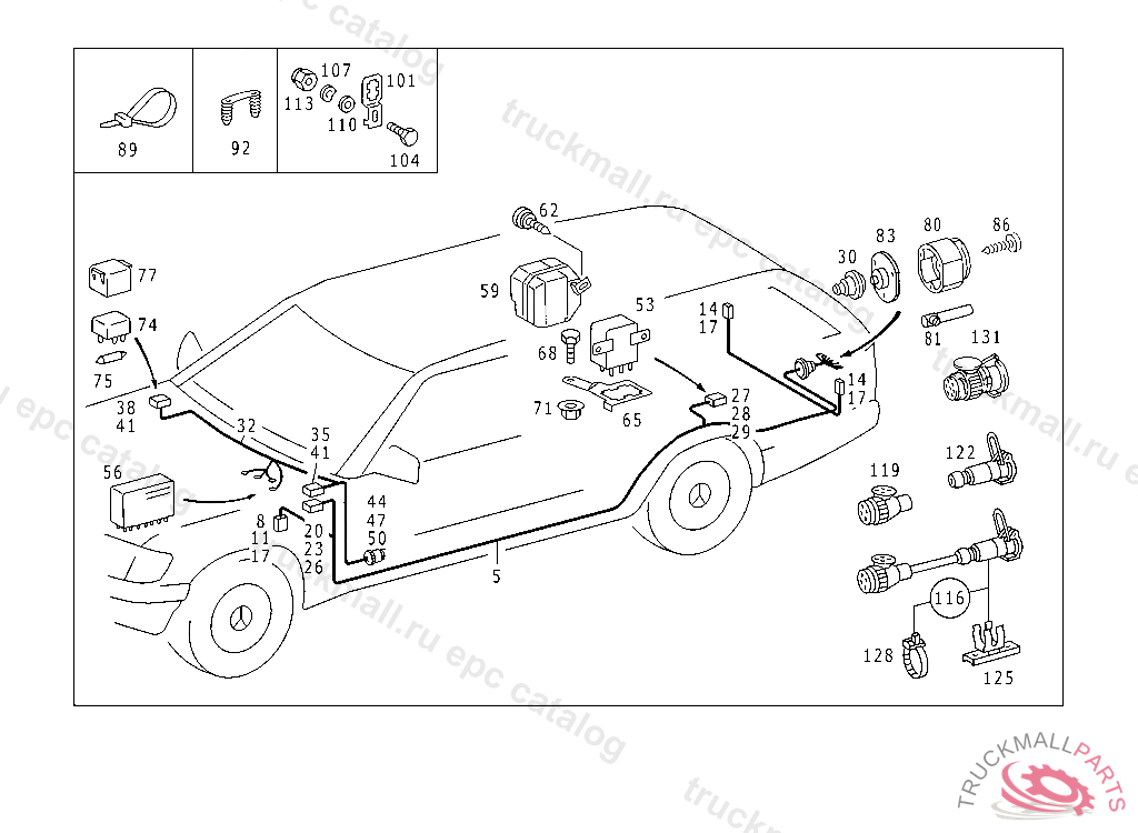CABLE HARNESS REAR LEFT AND RIGHT, FOR USE WITH 13-POLE TRAILER PLUG SOCKETF 084208