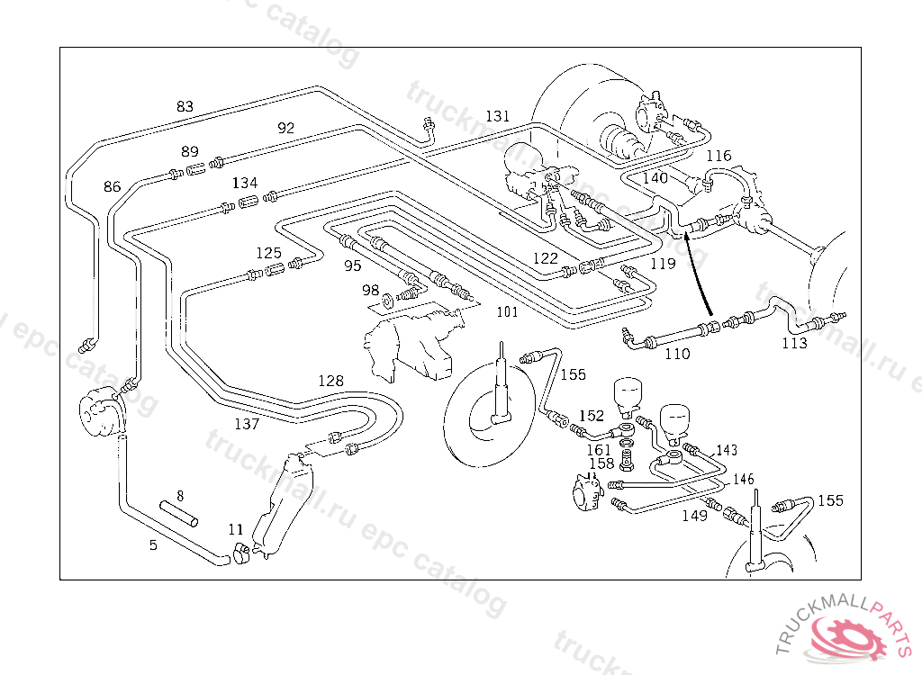 LINE FROM HEIGHT CONTROL VALVE TO RIGHT SPRING-LOADED BRAKE UNIT,091 F132203003,004,007,080,081,083,090,105,106,180,185,188,190,193F131809290,393 F134112