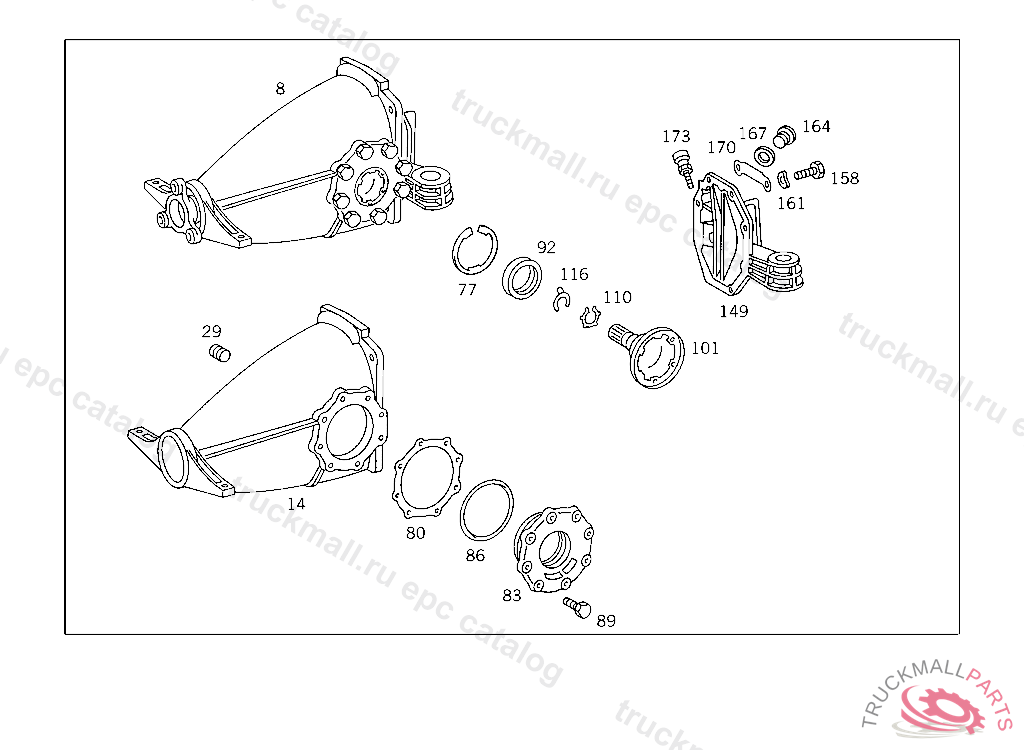 SPACER WASHER AS REQUIRED 1.3 MM, REAR AXLE HOUSING WITH DIFFERENTIAL,LESS SIDE BEARING CABS 003 103239 007 087551 086 007106 093 008992 102,103 240183 105 231729 183 015395 190 021957 193 002093 200 027295 280 000777 283 003632