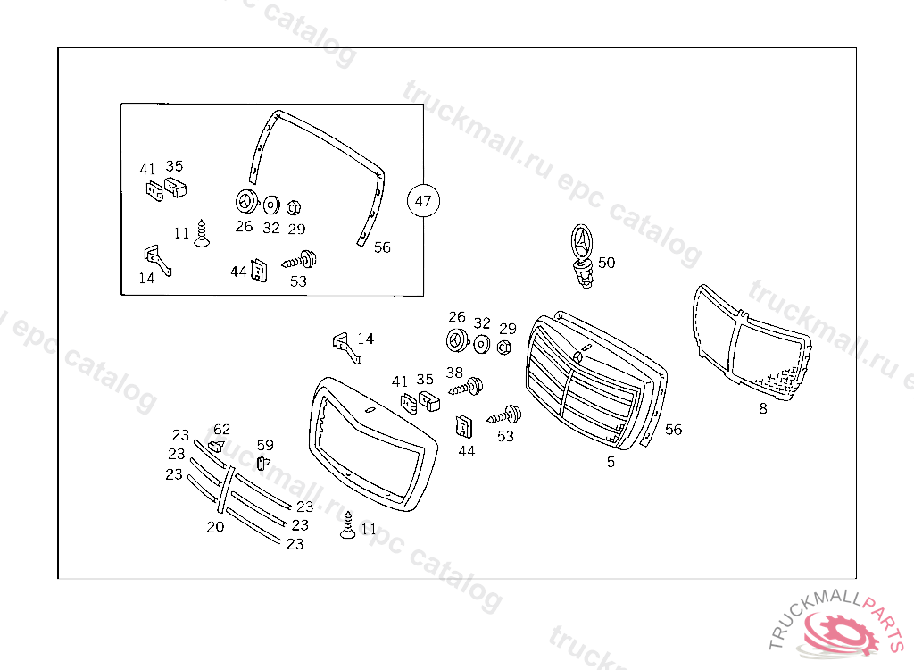 RADIATOR GRILLE SHELL , EXHAUST STOCK OF OLD PART NUMBERS FIRST UP TO IDENT NO.: A 307160, Replaced By: A1268800883