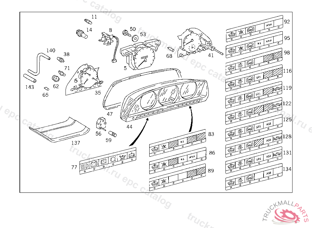 SPEEDOMETER240 KM, ON VEHICLES WITH ASR/ASD/4-MATIC MODIFY TRACTION WARNING INDICATOR,SEE ALSO ITZ P 010 DD.08/91