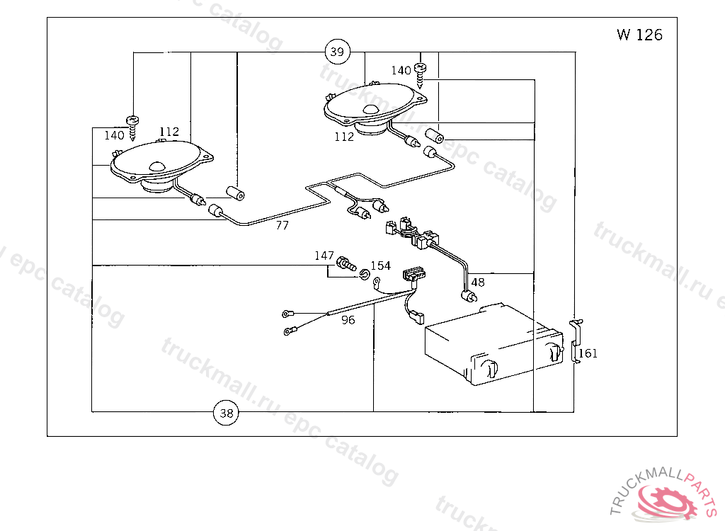 ELECTRIC CABLE LOUDSPEAKER CONNECTION CABLE, FROM CHASSIS 116.020 037452 116.024,025 039538 116.028,029 025862 116.032,033 034710