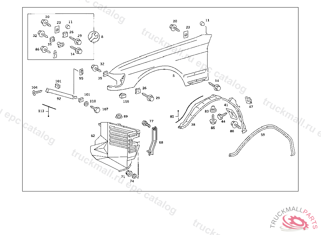 SCREW PARTITION PANEL TO FRONT FENDER, 003 109847 007 098846 086 007461 093 010729 102,103 304111 105 266568 183 019766 190 024811 193 007801 200 082947 280 003503 283 008887