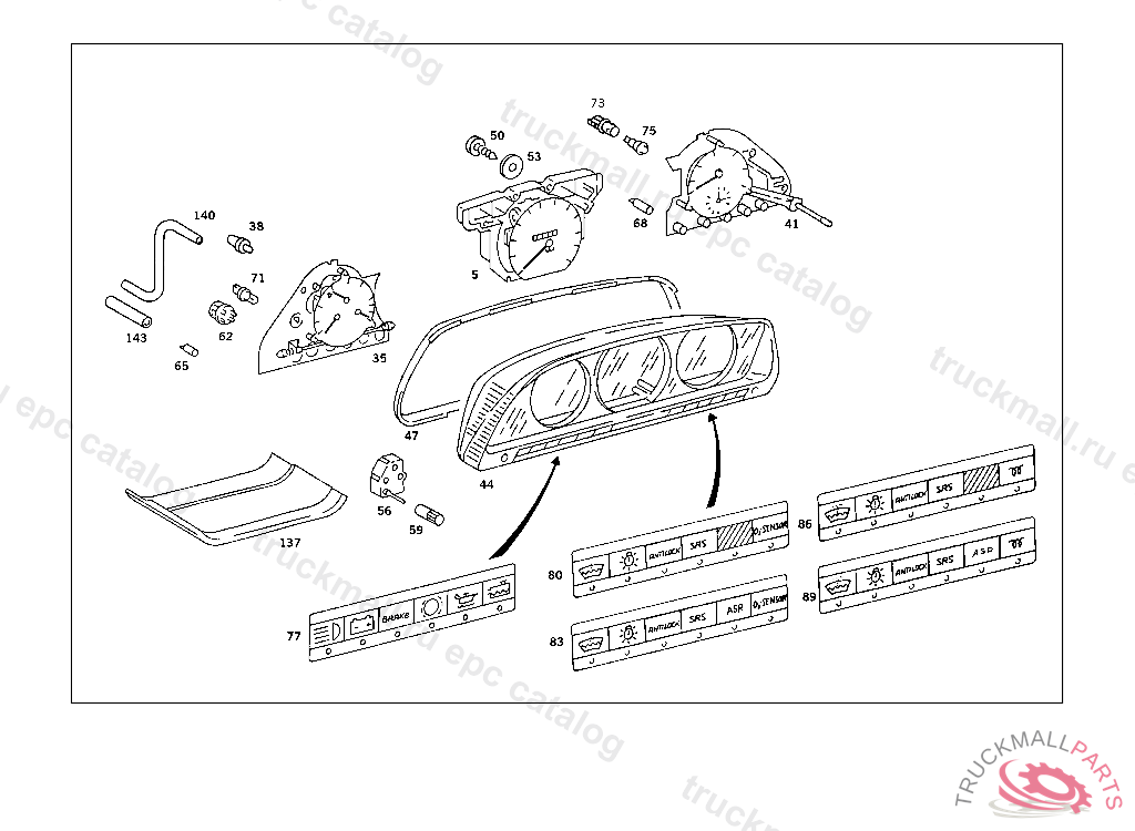 SPEEDOMETER140 MPH/220KM, NOT FOR CANADA ON VEHICLES WITH ASR/ASD/4-MATIC MODIFY TRACTION WARNING INDICATOR,SEE ALSO ITZ P 010 DD.08/91