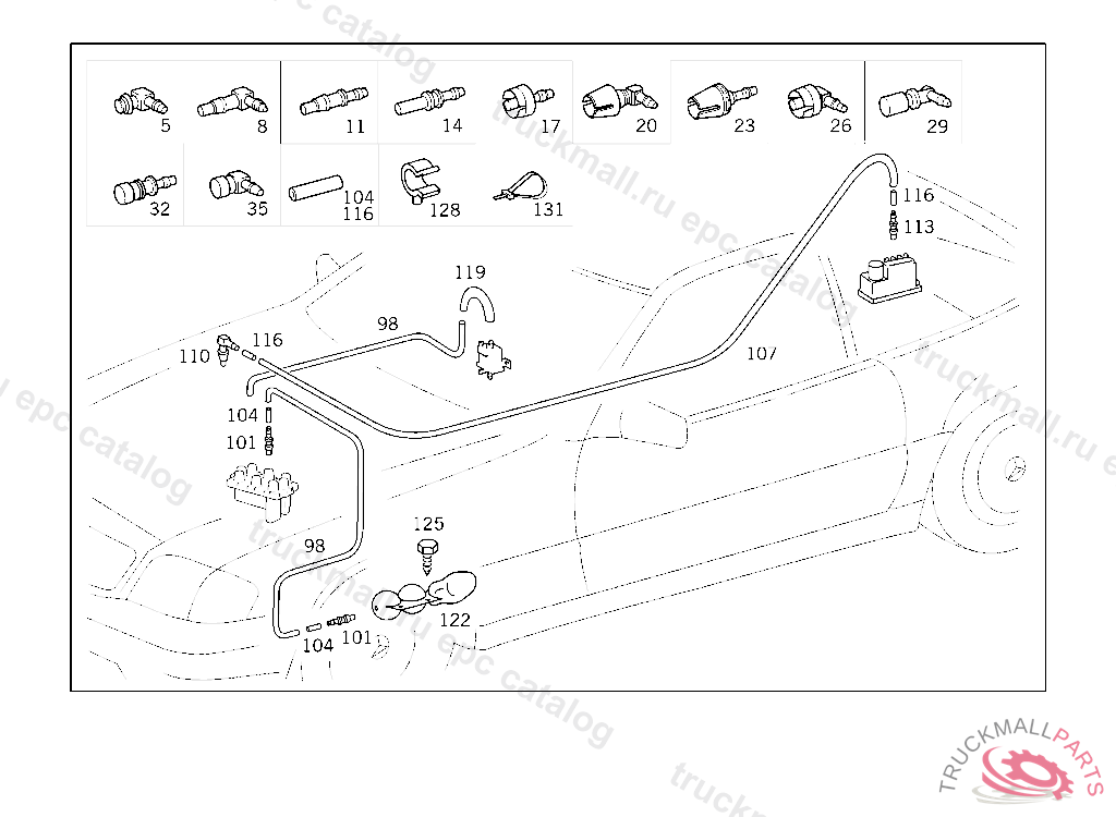 PIPE LINE FROM CHECK VALVE DISTRIBUTOR TO SUPPLY TANK 500 MM, ORDER BY THE METER 114.010 FROM CHASSIS 031062,114.015,017 FROM CHASSIS 033609,114.021 FROM CHASSIS 001552,114.022 FROM CHASSIS 000843,114.023 FR OM CHASSIS 000001 115.010 FROM CHASSIS 034113,115.015 FROM CHASSIS 032215 114.010,021,022 UNTIL PRODUCTION STOP, 114.011 UP TO CHASSIS 108425, 114.015,017 UP TO CHASSIS 245853, 114.023 UP TO CHASSIS 100866 AND FOOTN.63