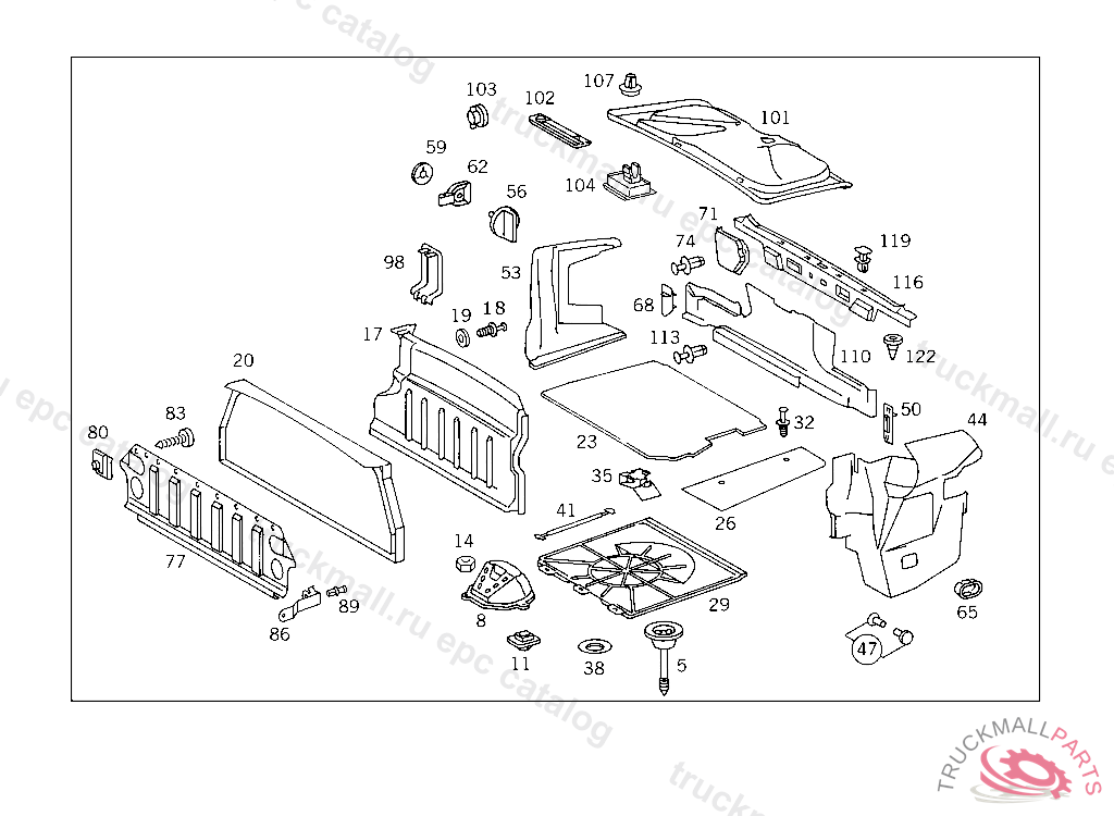 LINING REAR BODY PANEL,BOTTOM, FROM CHASSIS NEW EQUIPMENT 6/91 F 038363NO.9A76I NO.5A91I NO.8E54I NO.8F22I NO.8F34I NO.6B45I NO.3B24I NO.7C21I IIIIIIII F 125157 EXCEPT CODE 806 ALSO INSTALLED IN VEHICLE FROM F 125158 WITH CODE 805