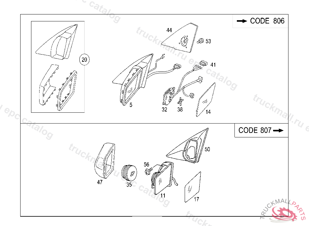 OUTSIDE REARVIEW MIRROR NO CASING,AUTOMATIC DIPPING,RIGHT, A 378020 EXCEPT CODE 807 ALSO INSTALLED IN VEHICLE TO A 378019 WITH CODE 808