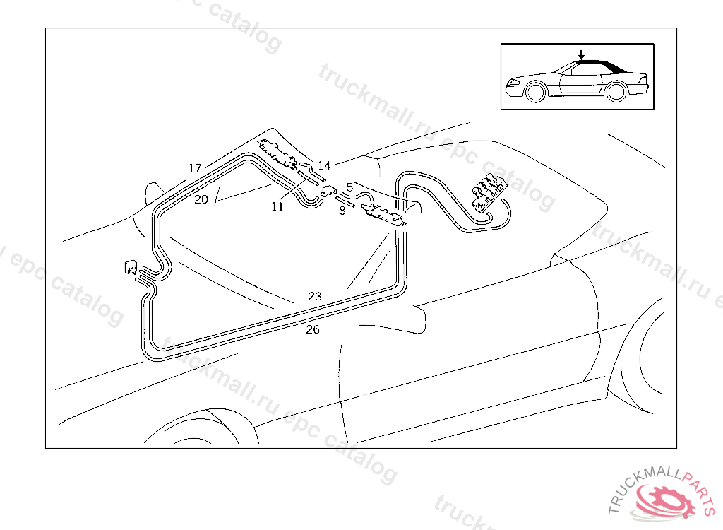 LINE FROM DISTRIBUTOR ON WINDSHIELD FRAME TO RIGHT LOCK NO.44