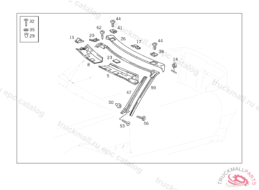 TREENAIL (WATER DEFLECTOR) ON FRONT PANEL PILLAR, A 444048 F 494601