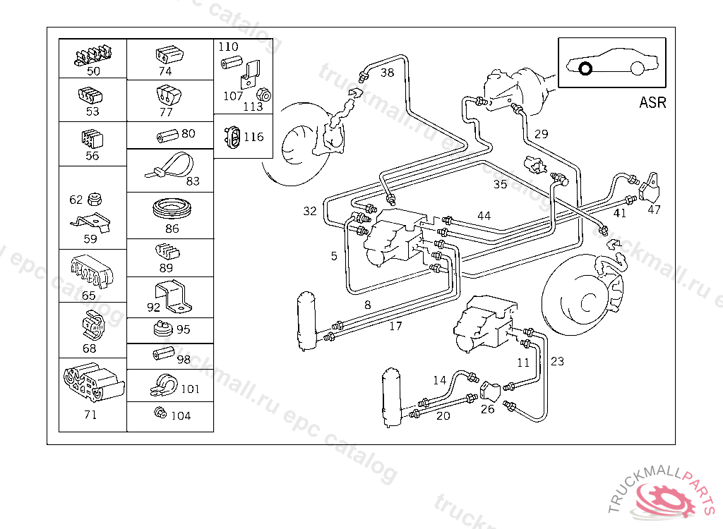 DAMPING STRIP BRAKE LINE TO FIRE WALL, 000 130186 003 066451 007 053318 083 002304 086 001762 093 001874 102,103 113215 105 135079 183 004049 190 005029