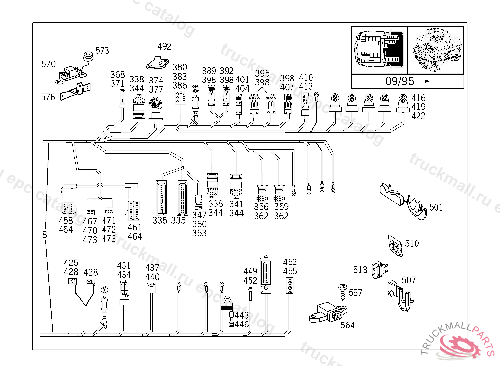 ELECTRIC CABLE ENGINE CABLE HARNESS,BODY MOUNTED, F 125158 EXCEPT CODE 805 ALSO INSTALLED IN VEHICLE TO F 125157 WITH CODE 806 F 140421 EXCEPT CODE 807 ALSO INSTALLED IN VEHICLE FROM F 140422 WITH CODE 806