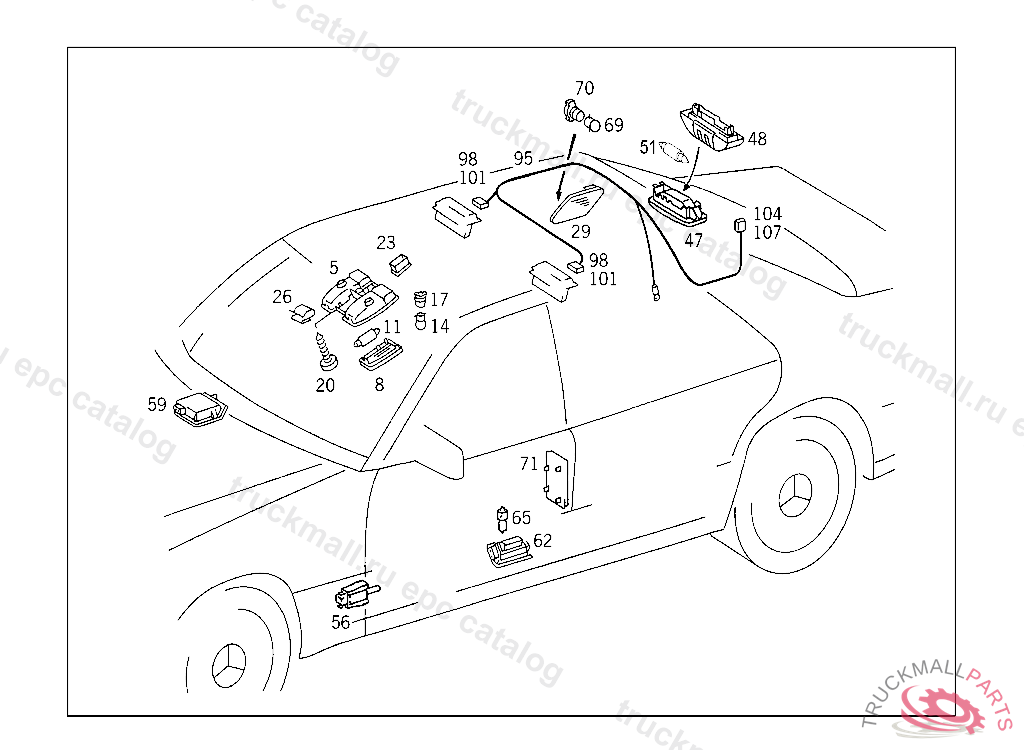 INTERIOR LAMP REAR DOME LAMP, WITH PARKTRONIC SYSTEM,NO.9051I NO.5076II NO.8F20I NO.8F30III NO.7101I NO.7101I NO.8F30I