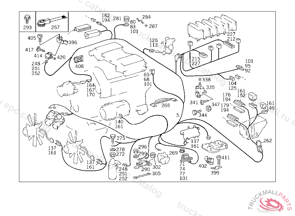CABLE HARNESS ENGINE CABLE HARNESS,BODY MOUNTED, USED WITH AIR CONDITIONER, A 212245 ALSO INSTALLED ON A 187334 - A 212243 WITH CODE 867 A 236205 EXCEPT FOR A 205261 - A 236204 WITH CODE 030