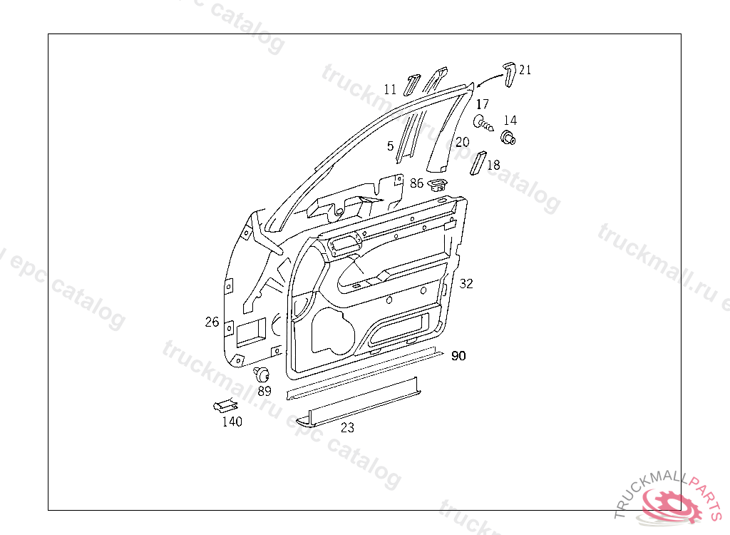 PANELLING LEFT FRONT DOOR,OUTSIDE, WITH FABRIC/VELOURS/LEATHER TRIM,A 086004 UP TO END OF MODEL YEAR 94NO.7088I NO.5072I NO.8E42I NO.8F18I NO.8F32I NO.6130I NO.3107I NO.7124I
