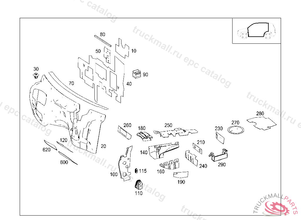 INSULATION TRANSMISSION TUNNEL, RIGHT, FIRST EXHAUST STOCK OF OLD PARTS UP TO IDENT NO. A 64598320100819, Replaced By: A1646823601