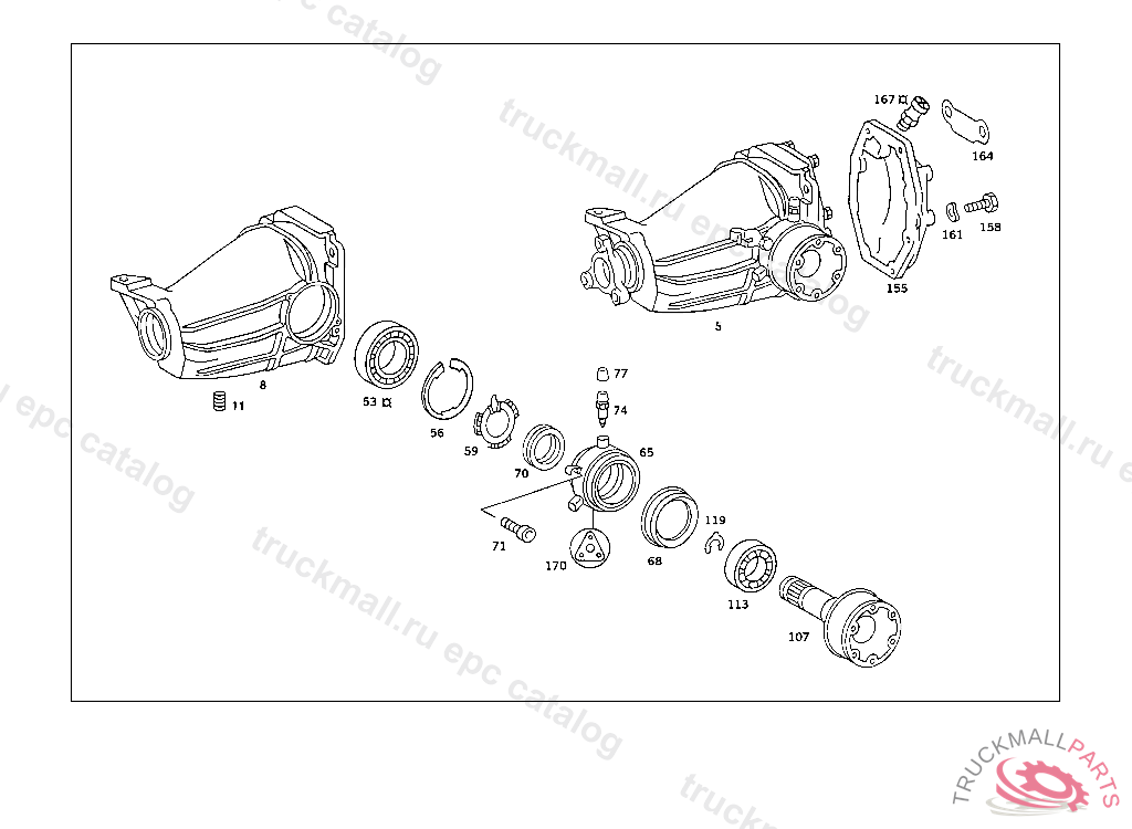 AXLE HOUSING , FIRST EXHAUST STOCK OF OLD PARTS UP TO IDENT NO. 201 : A 629170,F 849673 126 : A 605505, Replaced By: A2013503064