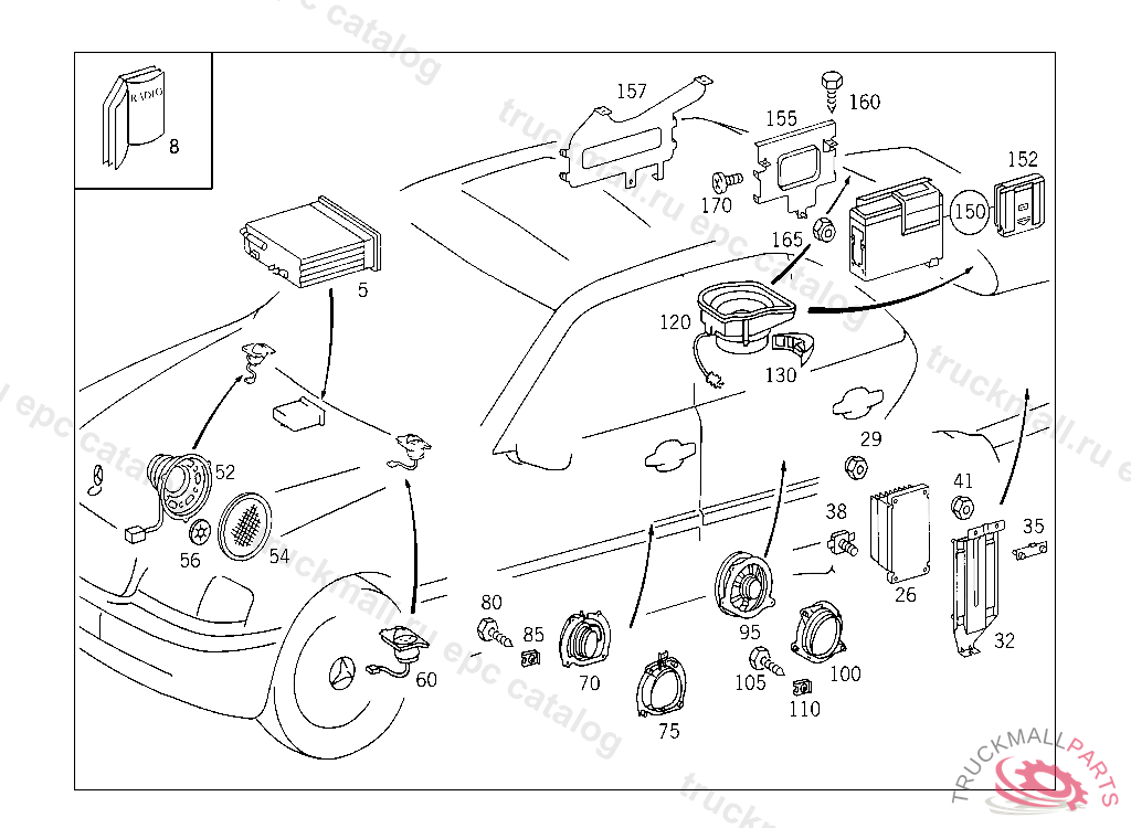 INSERT LEFT REAR DOOR LOUDSPEAKER, F 619720 EXCEPT CODE 808 ALSO INSTALLED IN VEHICLE FROM F 619721 WITH CODE 807