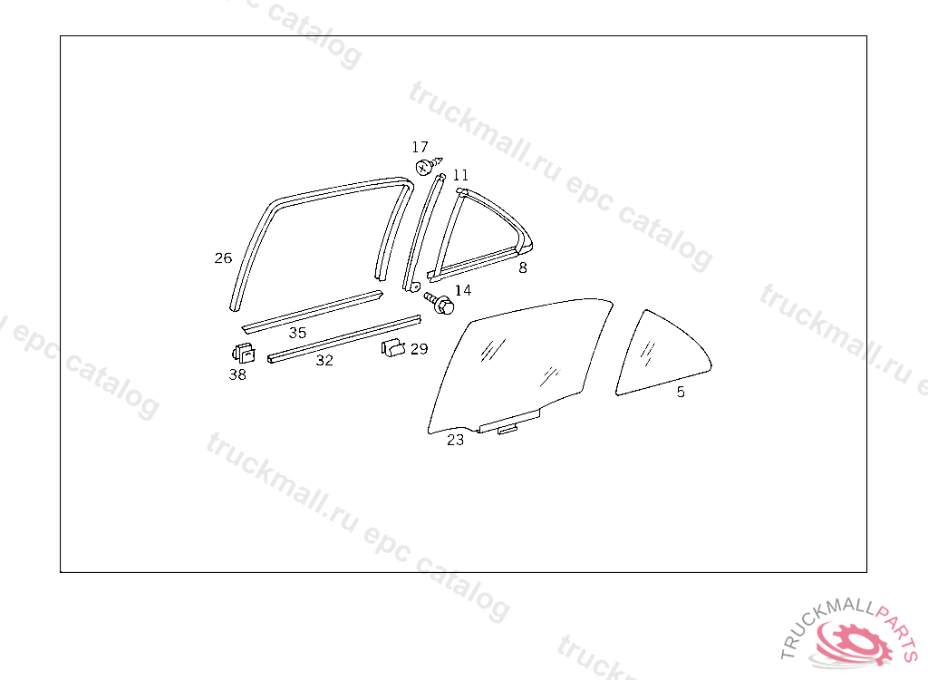 GLASS PANE RIGHT REAR DOOR,FIXED WINDOW CRYSTAL CLEAR, A 519673 F 619720 EXCEPT CODE 808 ALSO INSTALLED IN VEHICLE FROM A 519674, F 619721 WITH CODE 807